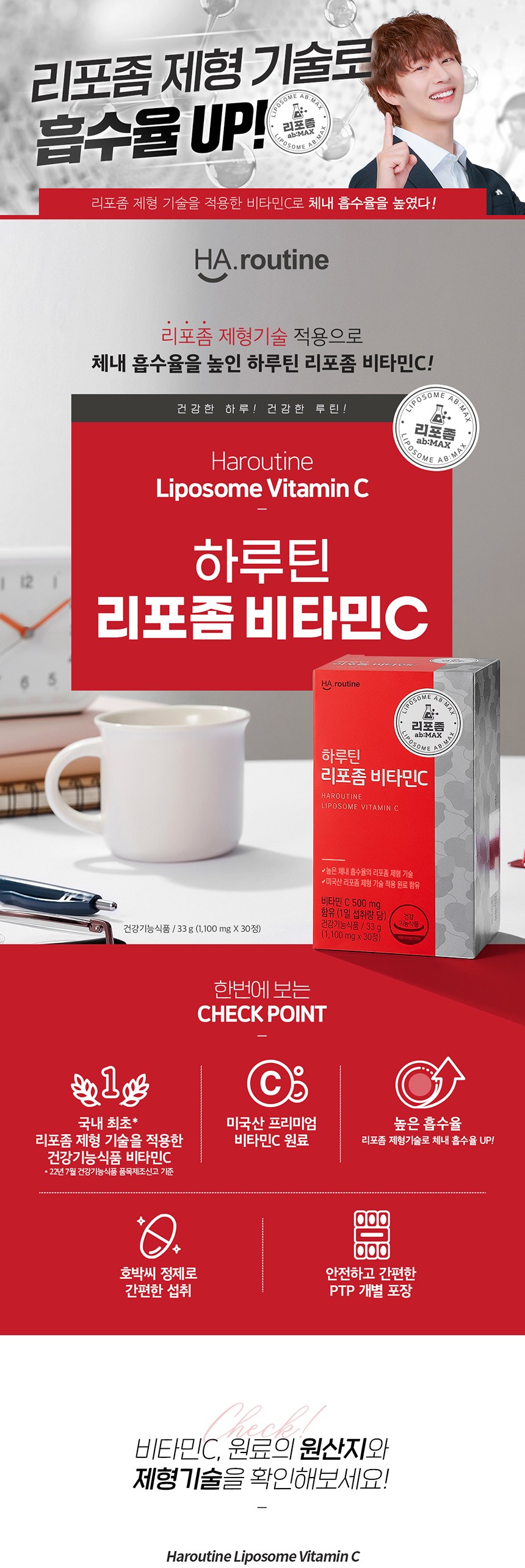 리포좀 비타민C는 체내 흡수율이 일반 비타민C보다 90% 이상으로 뛰어나며, 지속 시간도 길어 체내에서 더 오랫동안 활동할 수 있습니다.